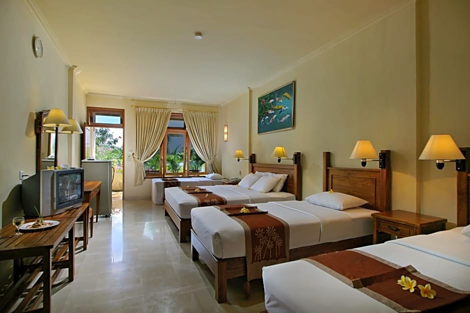 Located on the third floor of the property accessible via elevator on the eastern side of the premise, this spacious quadruple room can accommodate up to 4 guests and comes with a private bathroom and a large private balcony overlooking the lush garden.